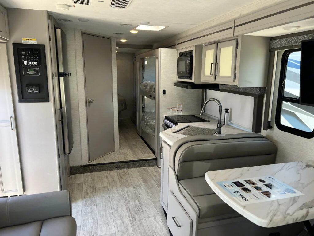 The 2024 Thor Chateau 31EV redefines travel with its perfect blend of sustainability and comfort for your rental. Designed for those who crave adventure, this motorhome accommodates up to 8 guests, providing ample space for families or groups on your rental. Its thoughtfully crafted interior features a cozy living area, a fully equipped kitchen, and comfortable sleeping arrangements, making it feel like a home away from home all of which are available for rent. The advanced powertrain ensures a quiet ride with reduced emissions, allowing you to explore the great outdoors. With modern amenities such as a flat-screen TV, and generous storage, the Thor Chateau 31EV is not only practical but also enhances your travel experience. Embrace the freedom of the open road while enjoying all the comforts you need for an unforgettable journey!